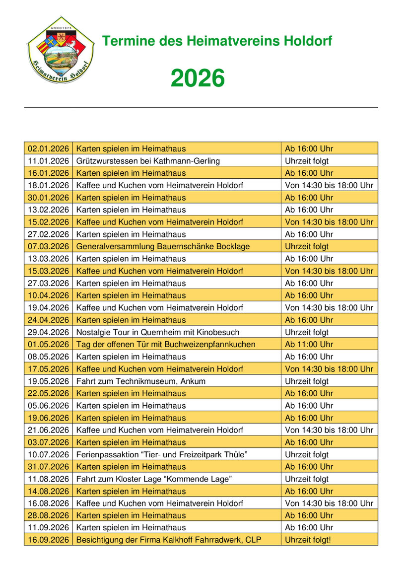 Weitere Termine über Veranstaltungen in der Gemeinde Holdorf bitte den nachstehenden Button betätigen.